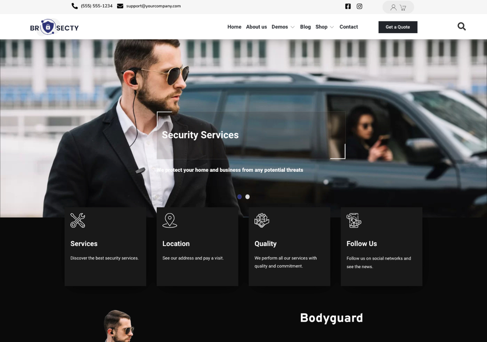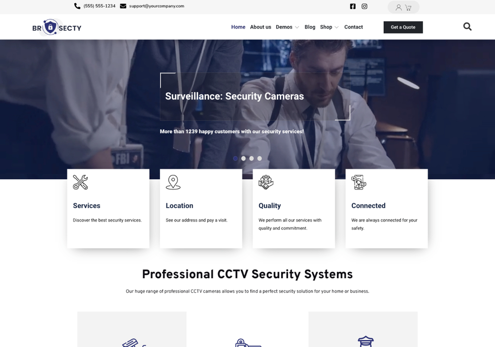 BR Secty is a WordPress theme for companies or professionals in electronic security (CCTV) or private security.